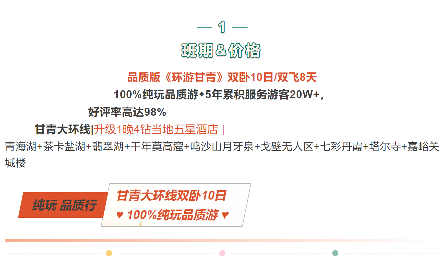 备注:由于莫高窟的预约参观时间等不可抗因素,游览时间及项目会根据具体情况,做适当的调整。莫高窟的游览安排可能会和鸣沙山的游览安排互相对调,敬请理解。