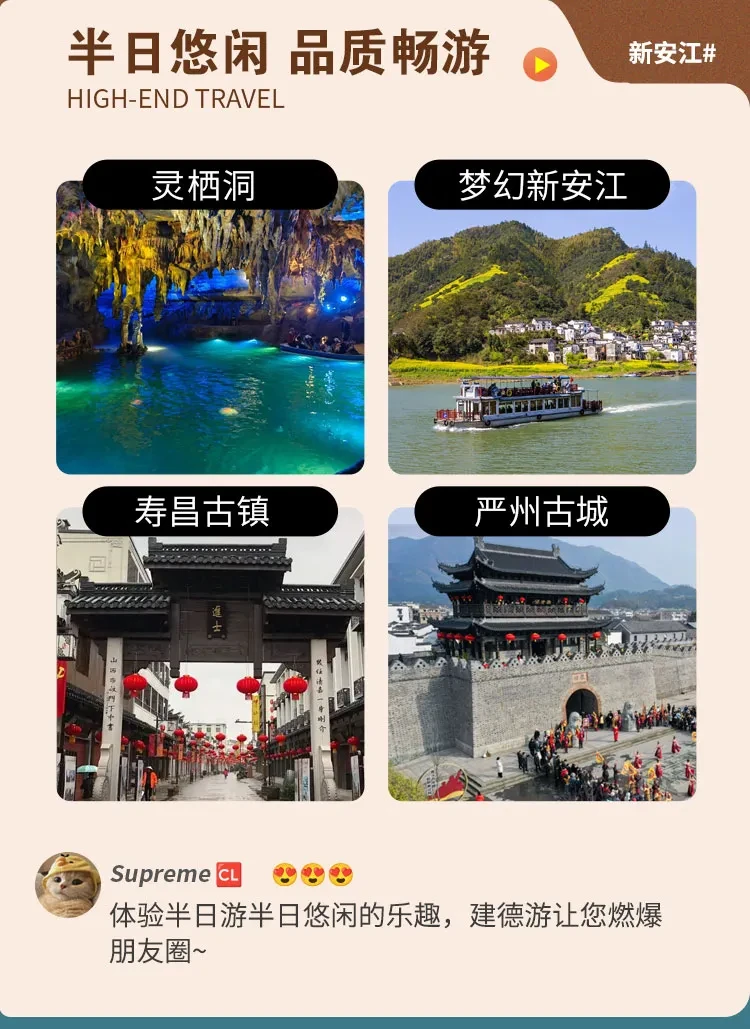 早餐后前往【寿昌古镇】至今已有1700多年的历史,古镇历经沧桑,见证了无数历史变迁,如今依然保留着许多古色古香的建筑和文化遗产。以其丰富的历史底蕴和独特的自然风光吸引着无数游客前来探访。古镇四周被绵延的山脉环绕,自然风光独特。镇内有许多小水系串流其中,宛如一幅江南水乡的画面。顺着这些小河游玩,可以领略到慢时光中的悠闲与宁静。此外,古镇内的山公园也是一处值得一游的景点,游步道和月季花海让人流连忘返。