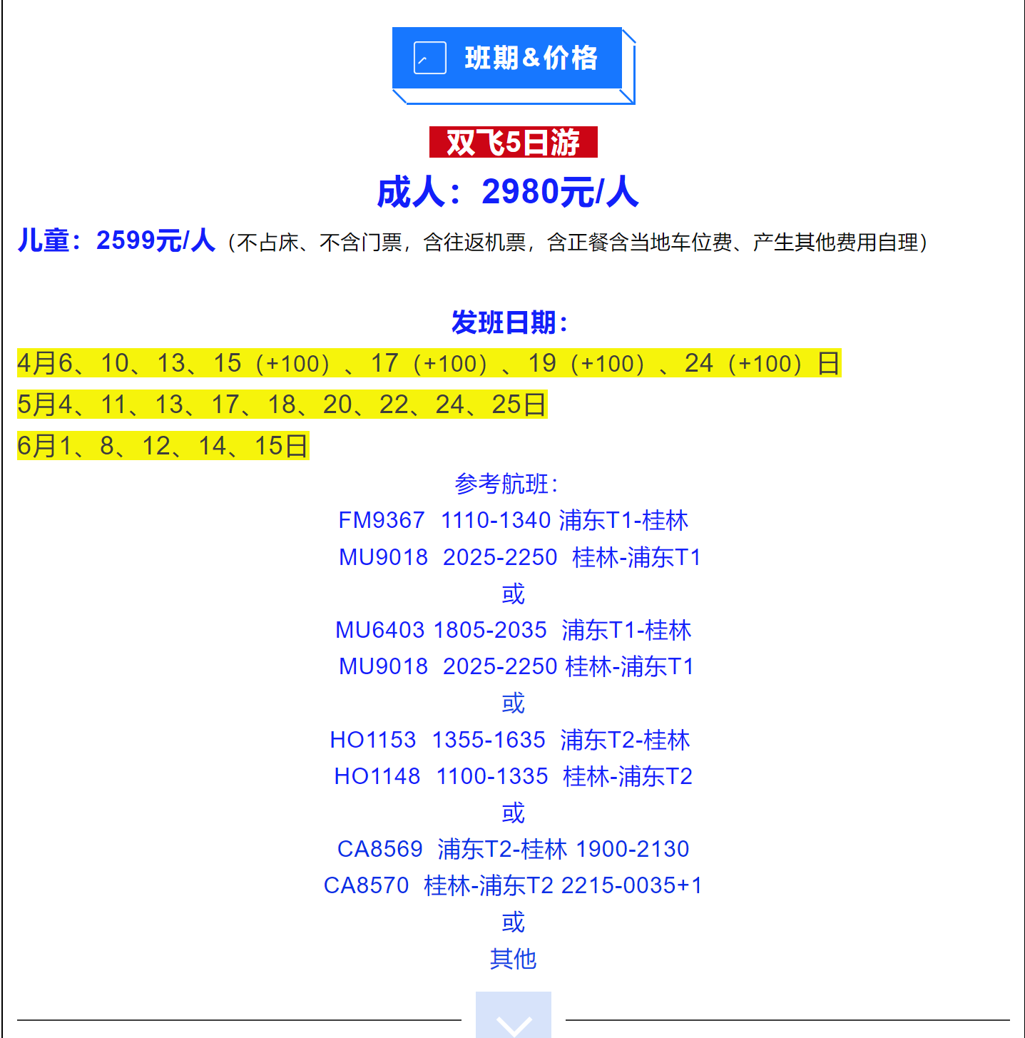 📢📢📢通知:因水位限制,如遇漓江返航船停航,散客产品方案如下,请各位知晓!