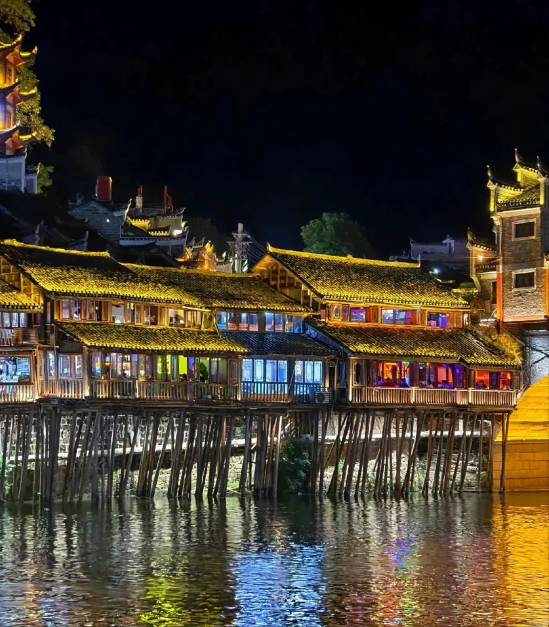 后前往【凤凰古城AAAAA】曾被新西兰著名作家路易·艾黎称赞为中国最美丽的小城,到达后可自行漫步沱江夜色之中,感受苗族的风土人情,沱江边可观赏(七重水幕灯光秀),燃放许愿灯,或约上三五好友前往酒吧畅饮当地胡子酒,品味独特的苗疆风情,一切烦恼都会随风而去..水幕灯光秀为赠送项目,如遇堵车、水位过高或过低大风暴雨等恶劣天气及特殊原因导致不能正常游览,无退费请谅解!