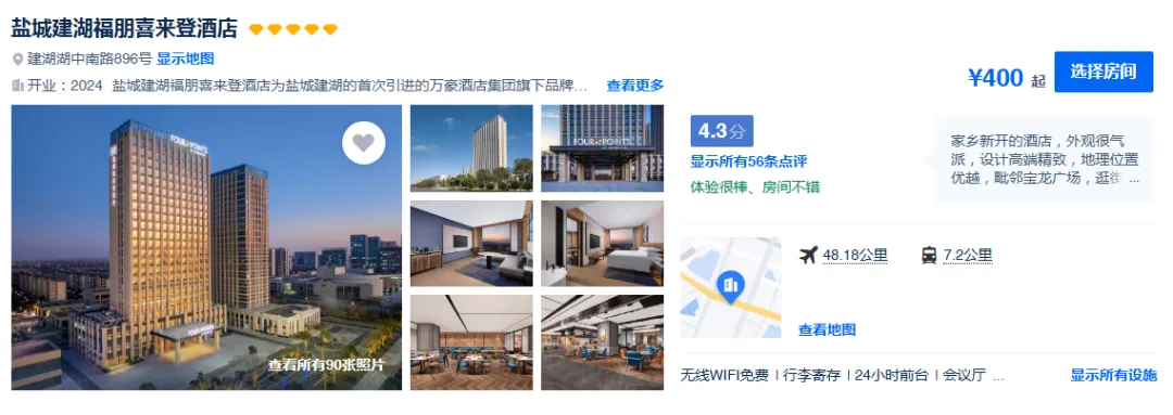 酒店紧邻一众文旅设施,建湖县图书馆、科技馆、体育馆、文化艺术中心等;距九龙旅游度假区约10km,为度假更添风景。
