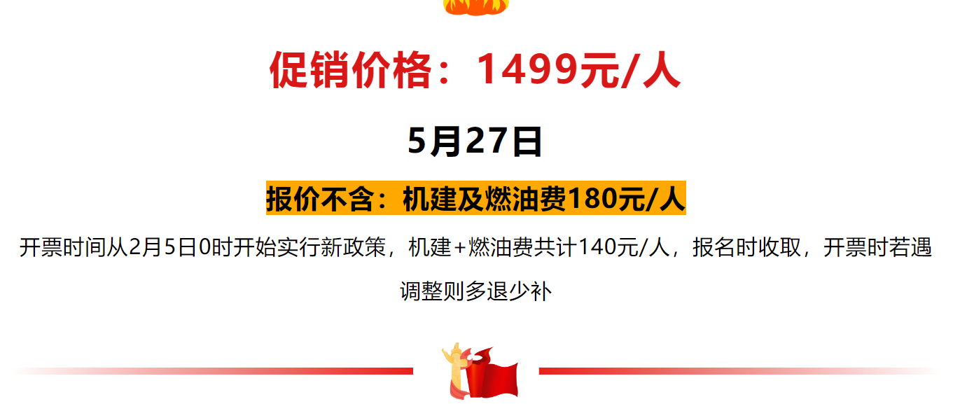 2.机建燃油费140元/人(必选,价格如有浮动以航空公司出票价格为准!)