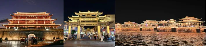 后欣赏【一江两岸灯光盛宴】和【湘子桥“光影秀”】(每晚19:00-22:00亮灯,广济桥“光影秀”每晚20:00整点开始:如因检修需要暂停夜景亮灯或其它不可抗力原因导致无法参观不作赔偿),本次亮灯工程的设计团队曾负责G20峰会、杭州西湖夜景,由央视的灯光控制师亲自操刀,整个设计周期将近三个月。完成200公里管线敷设,近7万套灯具安装,涉及一江两岸6平方多公里范围,主要亮灯工程分布从金山大桥到韩江大桥沿江两岸,包括金山大桥、韩文公祠、笔架山、韩师大门、东西堤岸、广济桥、韩江大桥、凤凰洲公园、北阁佛灯、城门。