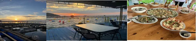 16:00 前往体验当渔民的乐趣,远眺白鹭天堂、出海观光彩虹海、穿越万亩蚝田、蚝田收割、撬蚝体验、趣抓蟹笼、免费加工、渔排垂钓、逗趣河豚、尝鲜生蚝,任吃到饱,船游彩虹海、万亩蚝田、南澳海湾双明珠——鹿屿和猎屿双岛。晚餐于渔排上品尝【龙虾鲍鱼海鲜宴】。