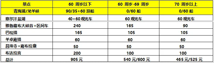 (以下门票价格仅供参考,具体以景区当日公布的政策执行,60 岁以上必须凭本人身份证才可享受门票优惠, 年龄必须按年月日精确计算!)
