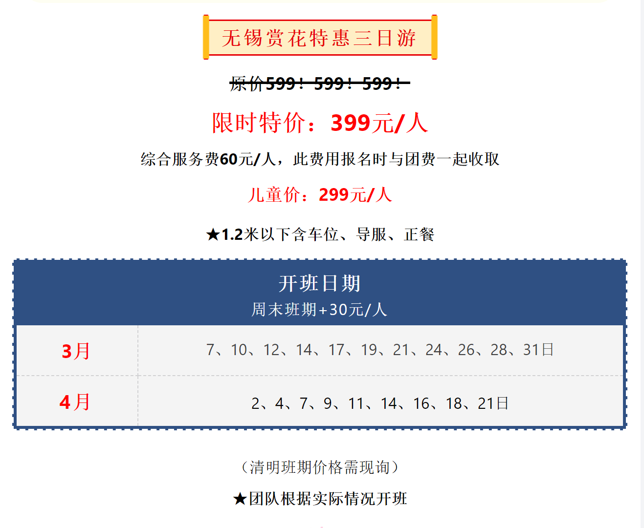 D2:睡到自然醒起来吃早饭后前往游览【鼋头渚风景区】(自理老年票40元/人后赠送游船,55周岁以下需另补35元/人差价,因樱花盛开期有交通管制,大巴无法直接开到景区门口,需要额外自理30元/人往返的轮渡,如不自理,需要步行3KM左右的路程到景区门口与导游汇合。樱花季节为3月—5月,最佳赏花时间:鼋头渚的早樱一般于3月中旬至4月上旬开花)(游玩时间约180分钟),来无锡必游太湖,游太湖必至鼋头渚。著名诗人郭沫若感慨:"太湖佳绝处 , 毕竟在鼋头"。鼋头渚风光,山清水秀,浑然天成,为太湖风景的精华所在,素有"太湖第一名胜,中华赏樱胜地"的美誉。作为"世界三大赏樱胜地" 之一,无锡鼋头渚樱花谷内有3万多株、100个品种樱花树, 樱花节期间,樱花如云似霞、满树烂漫,春风轻拂、落樱飞舞,美不胜收。樱花盛开的日子,不用再远赴日本,樱花天堂,其实就在身旁。结束后返回酒店休息。