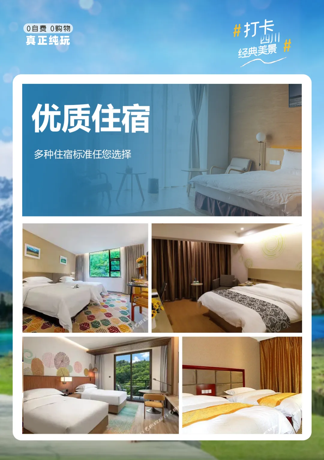 【用餐】5早4正餐;行程指定特色用餐,九寨晚餐酒店配送。