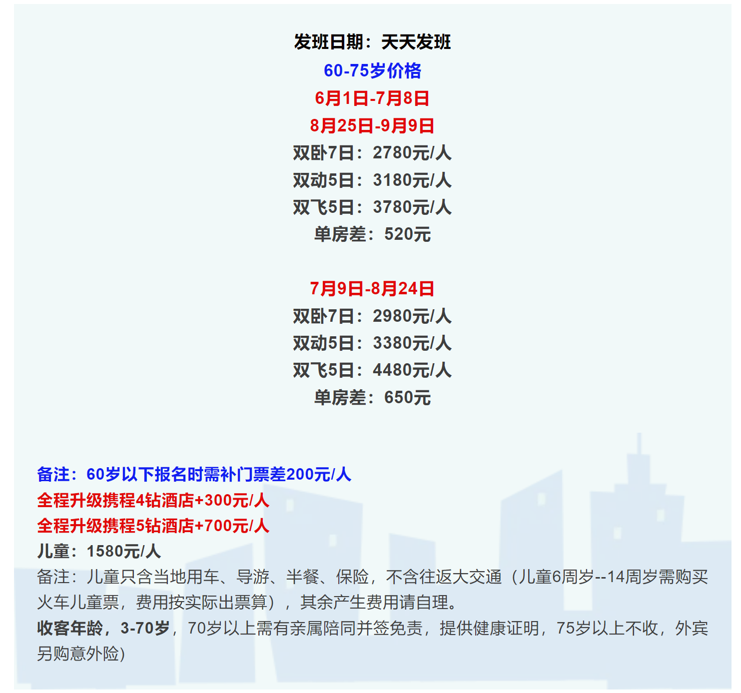 4、行程中必须包含的门票费用我社都已经包含了,可以步行前住的,游客可根具实际情况,做出相应的选择。