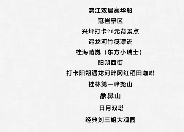 提示:桂林为少数民族地区,旅途当中请您认真倾听导游讲解。请尊重当地宗教民俗文化,尊重导游司机服务成果,做文明旅游人;