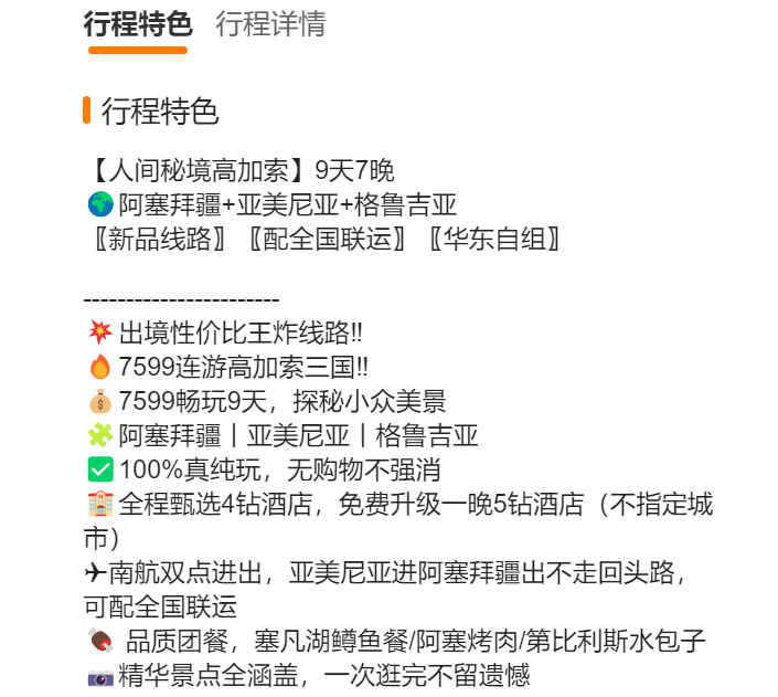 3.特别提示:行程所列酒店、用餐、车辆、航班、均以当地标准和航司航班为准,(行程所列航班仅供参考,以实际出票时间为准)如有特殊需求者请提前报备、否则视为默认;