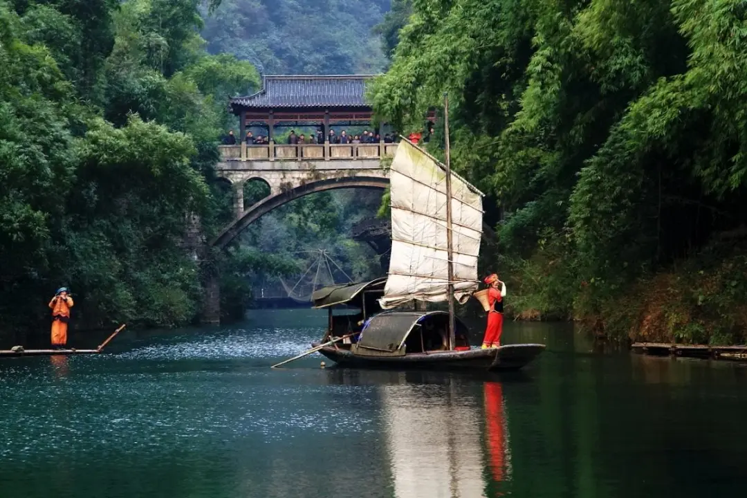 08:00-11:30 上岸游览包含景点【神农溪】,神农溪是湖北省巴东县长江北岸的一条常流性溪流,由南向北穿行于深山峡谷中,全长60公里。溪流两岸,山峦耸立,逶迤绵延,层峦叠嶂。形成龙昌峡、鹦鹉峡、神农峡三个险、秀、奇各具特色的自然峡段。峡中深潭碧水、飞瀑遍布、悬棺栈道、原始扁舟、土家风情、石笋溶洞无不令人惊叹。