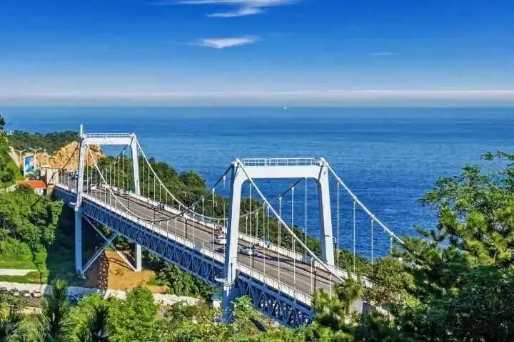 乘车游览【滨海路+北大桥】驱车行驶在这条公路上,一边是长满针阔叶混交林的山峦和盛开着火红杜鹃的山麓,一边是烟波浩渺的大海和千姿百态的礁石岛屿,沿途奇景叠出,美不胜收。
