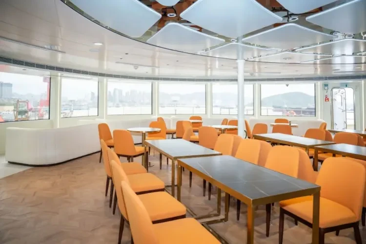 二层舱室以商务客舱和休闲餐吧为主,大堂中部的餐吧可提供各类美食,餐厅外是超大观景平台,移动的海上餐厅+超绝海景 ,值得前往打卡,此外,专属儿童乐园也安排上了!出游带娃都不耽误。