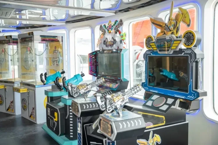 一层舱室为普通客舱,整体给人舒适和温暖的感觉,内部还设置了电玩乐园配有急速赛车、胜利摩托双人射击、抓娃娃机等潮玩设施,如果想留下一份纪念品,可以换取2枚小岛你好特定游戏币。