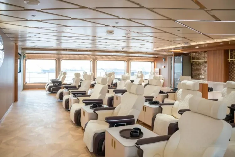 三层的贵宾舱以安静舒适为主引入航空商务品质提供全自动皮质座椅、封闭休眠舱、免费小食。