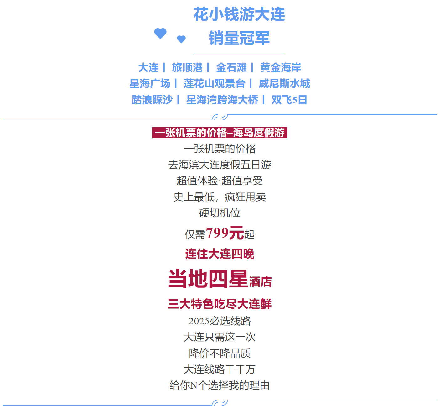 仅需一张机票钱,即可拥有高口碑又极具性价比的大连行;