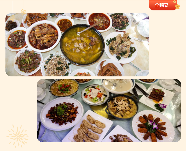 全程2早4正餐,正餐升级一餐全鸭宴,升级一餐烤鱼宴,再升级一餐外婆红烧肉宴