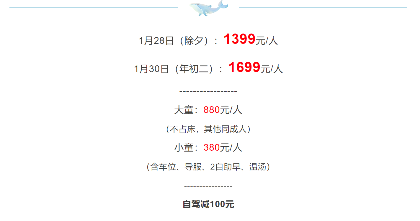 免责声明(凡报名者均视为接受本声明,不同意者可选择放弃报名本产品):70岁以上老人如要参团必须要慎重考虑,一定要保证本人身体健康、要请家人或亲朋陪同并请成年直系亲属陪同并签订免责声明;陪同人员对老人的安全监护全程负责;一旦发生任何意外,旅行社将按本免责声明之约定,不承担法律、经济赔偿等责任。因接待能力有限,80周岁以上不予接待,敬请谅解!