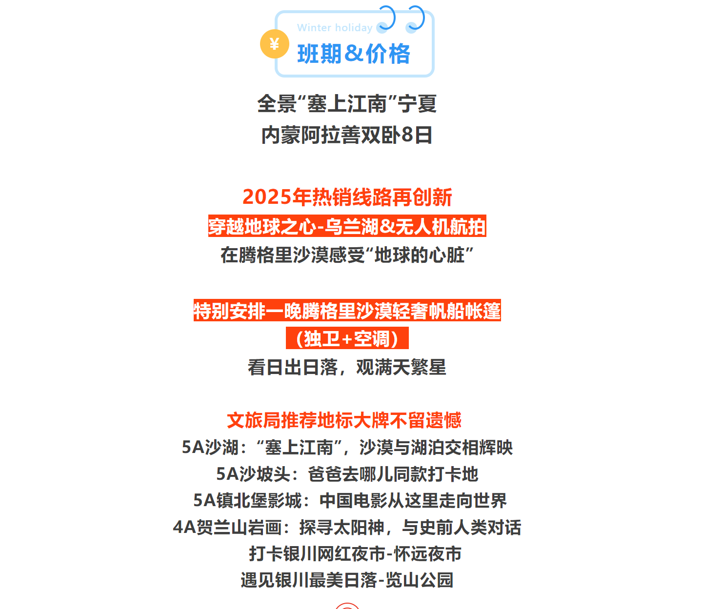 9、不含相关的景区交通,报名时请现付;.贺兰山岩画10元电瓶车,沙湖70元游船,沙漠穿越冲浪车280元