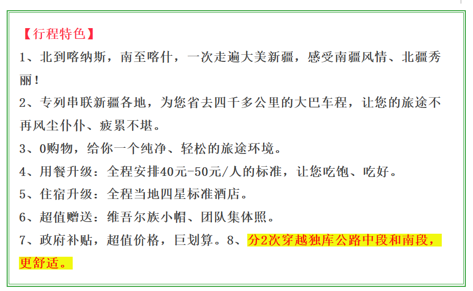 ★全程升级高标用餐——新疆全程安排正餐40-50元/人标准,告别吃不好吃不饱的历史!