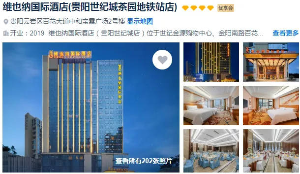 贵阳参考:四钻贵阳世纪城维也纳、贵阳旅途光、云鹭、百灵来住、云鹭,和颐至尚(商贸城店)、华美达安可(乌当区店)、柏恒喜天大酒店、贵怡尚品等同级酒店