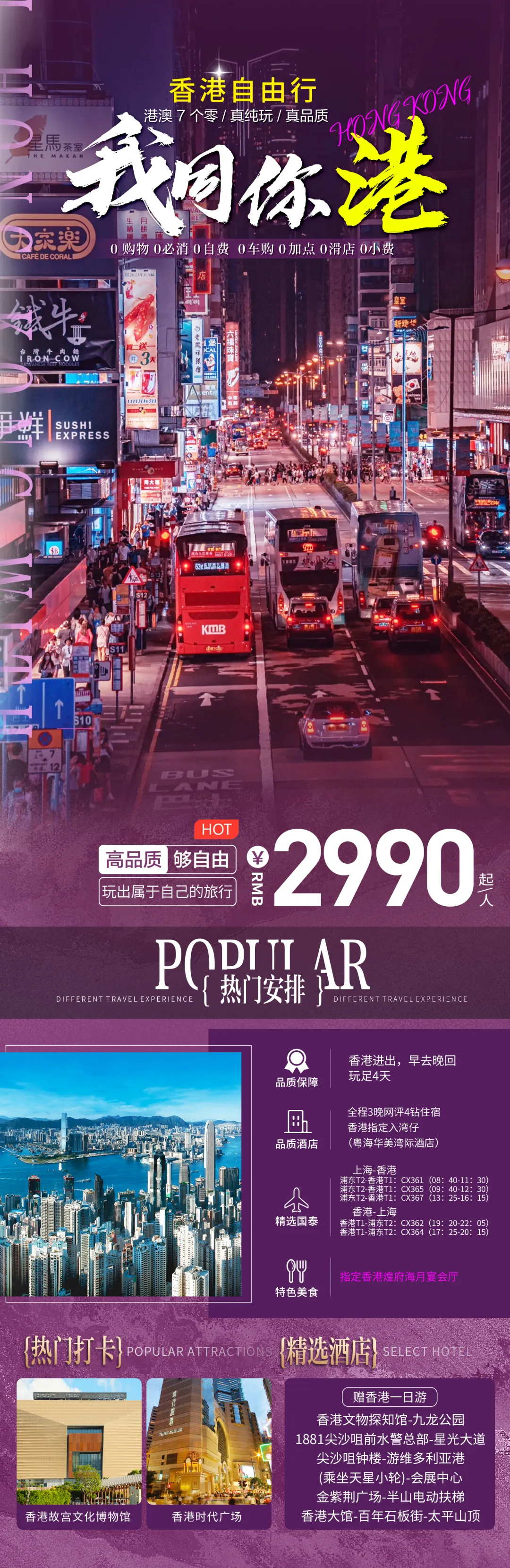 12:00 酒店大堂集合前往西九龙/香港机场-返回浦东机场结束(2人起送) |