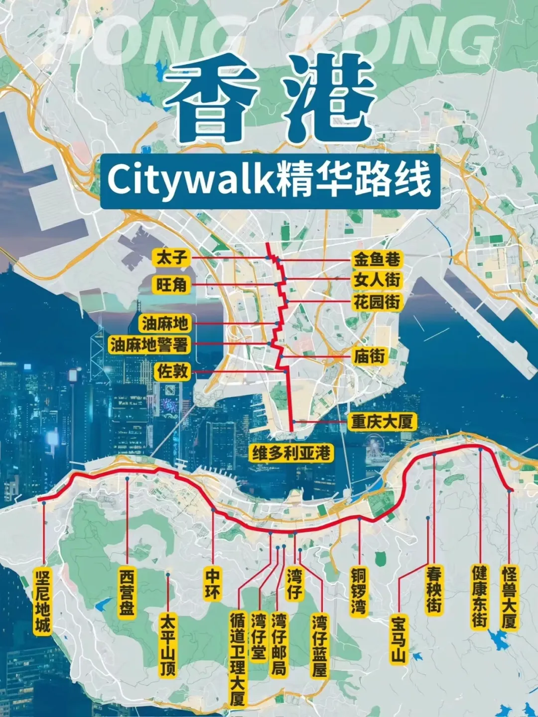 佐敦➡️尖沙咀➡️星光大道➡️宝马山➡️太子➡️金鱼街➡️花园街➡️西洋菜南街➡️女人街➡️油麻地警署➡️庙街