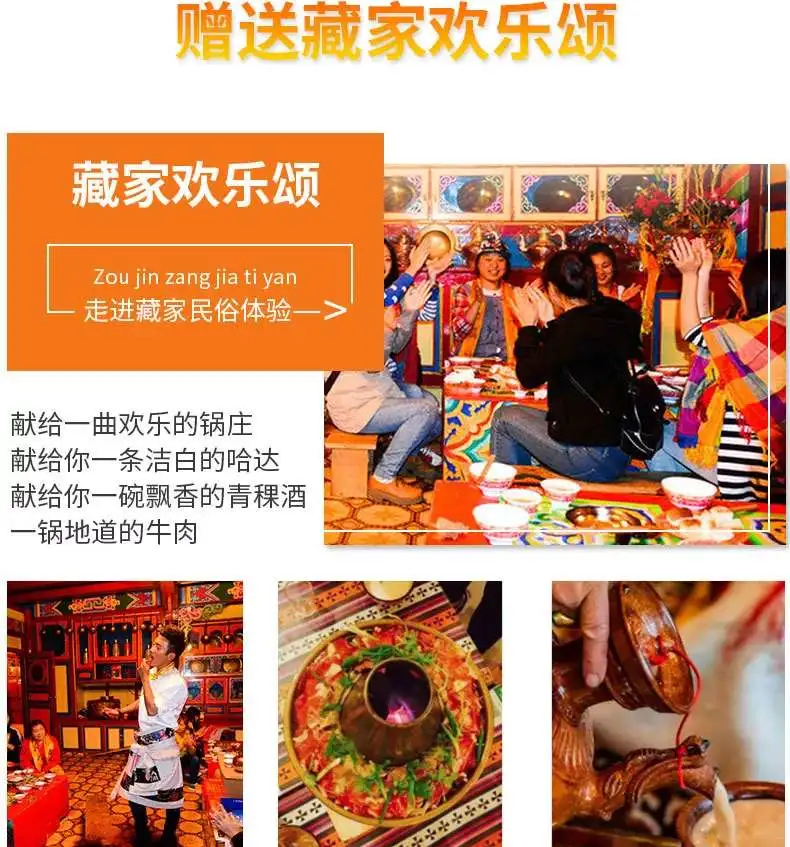 赠送1:走进藏民家访,吃藏家土火锅,跳锅庄、好欢乐好嗨皮,价值200元/人!