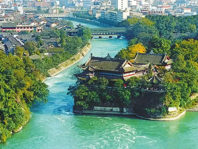 之后继续前往游览【都江堰水利工程】(游览约2.5小时左右)(含大门票,不含景区内电瓶车往返15元/人、古城摆渡车10元/人,无线讲解耳麦10元/人,费用请自理):观二王庙、过安澜索桥、漫步离堆公园,欣赏川西园林古朴秀色,感受中华文明的千年智慧。