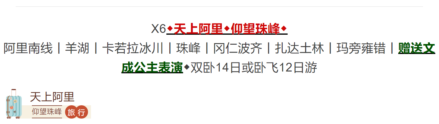 ⑥阿里地区为特殊旅游目地的,如遇特殊情况可更改行程中的住宿地,且保证不降低住宿标准