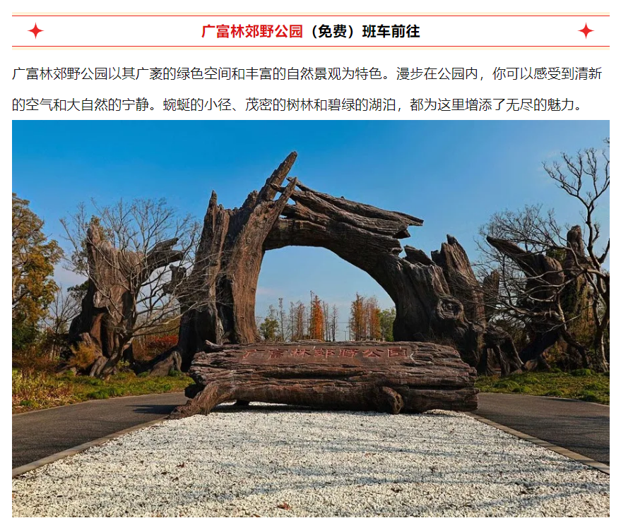 广富林郊野公园以其广袤的绿色空间和丰富的自然景观为特色。漫步在公园内,你可以感受到清新的空气和大自然的宁静。蜿蜒的小径、茂密的树林和碧绿的湖泊,都为这里增添了无尽的魅力。