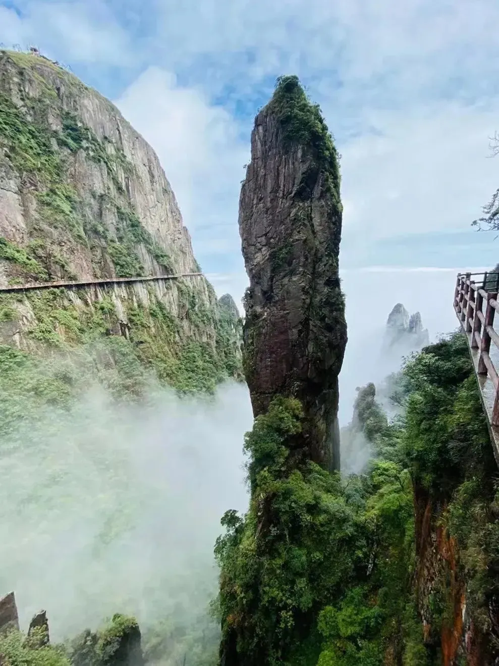 莽山五指峰高空栈道、天台山、金鞭峡谷、摩天岭、八卦台、心心心相印倒影池、流浪地球同款垂直电梯、观音古寺及万寿塔、莽山奇松、莽山云南日出、高空索道等数十个景点。