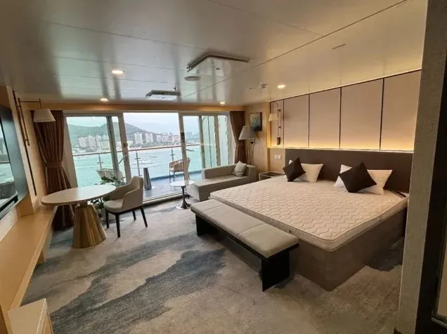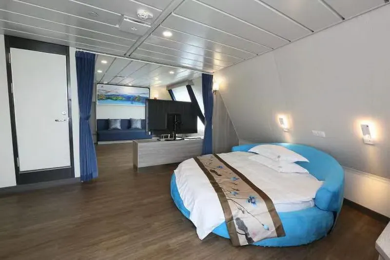 2022年1月下水,原为客滚轮,号称国内同类型最豪华,运行烟台至大连轮渡航线,经过改装2024年1月起运行三亚-西沙航线。同时,比照国际豪华邮轮设计理念,露天甲板布置了天幕区、休闲座椅、时尚橡塑地板、LED 大屏幕等设施设备,能够为旅客提供晚宴、会议,派对等各种创意个性化服务,可以满足旅客出行和休闲的双重需求!