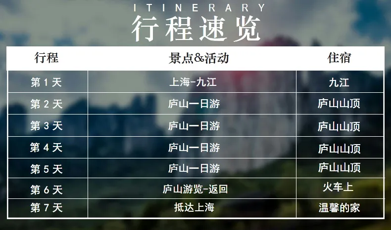 上海往返九江大交通费用大交通可以客人自定,或者自愿交由旅行社代订(卧铺提前20天报名可以保证中下铺)代订车票价格如下: