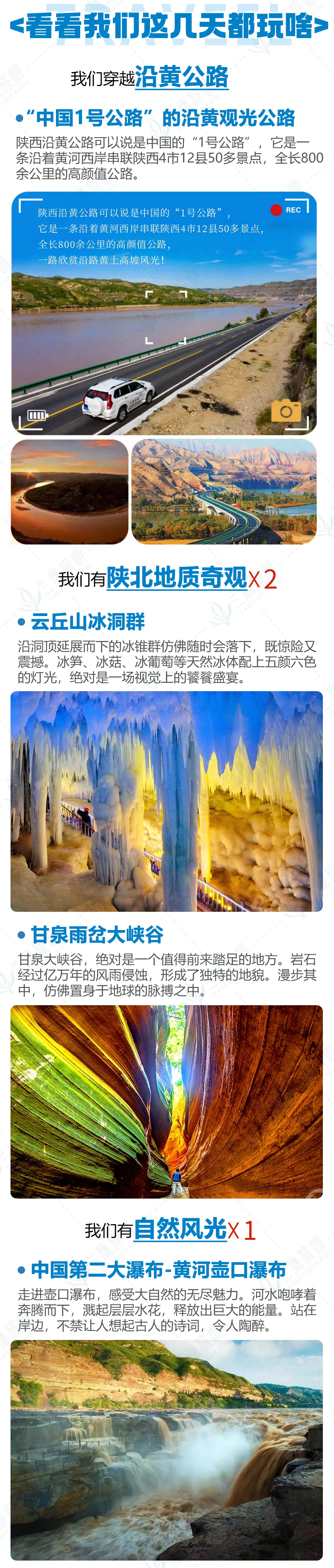 2、必乘景交耳麦:壶口瀑布40元/人,雨岔大峡谷70元/人,兵马俑+华清宫耳脉20元/人