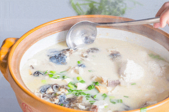 鱼头中只放一点盐,不加其他汤汁像牛奶一样完完全全全是鱼头熬出来的精华味道非常鲜美!