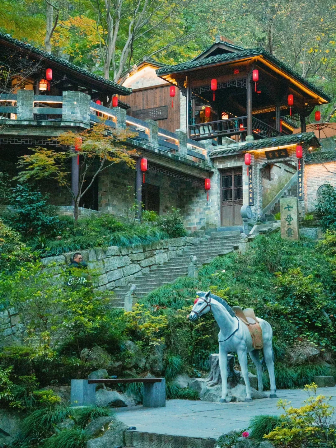网红打卡地,游玩【忆江南12景】;这12个景点分别是:枫林晚照、檀爱抱石、乱石听涛、七星采樵、冰川奇观、奈何碉楼、无忧竹海、送子观音、望江阁、叶法善真、荆公书堂、天书问道。山上茂林修竹,幽谷流泉,鸟语花香,景色宜人,具有良好的历史人文资源和自然资源。