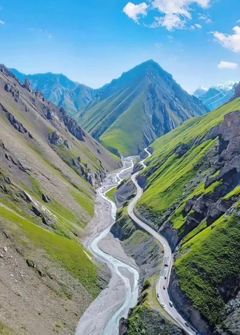 它穿越天山,一路蜿蜒,纵贯南北疆