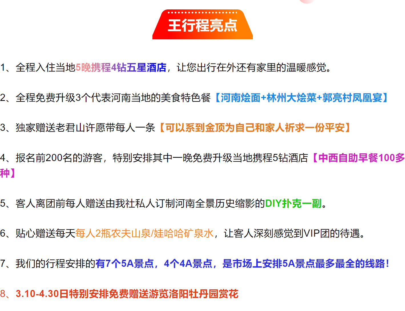 如遇河南当地各景区搞活动执行免门票政策,则按实际景区政策为准!