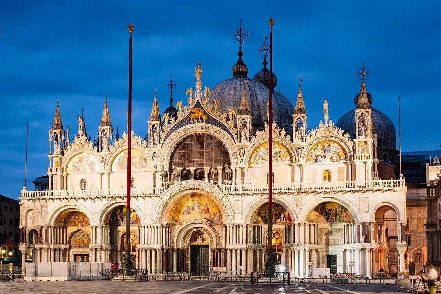 上岛后,前往游览【圣马可广场】威尼斯的地标,政治、宗教和传统节日的公共活动中心。 【圣马可教堂】整个教堂是拜占廷风格的建筑和艺术的杰作历史陈迹。