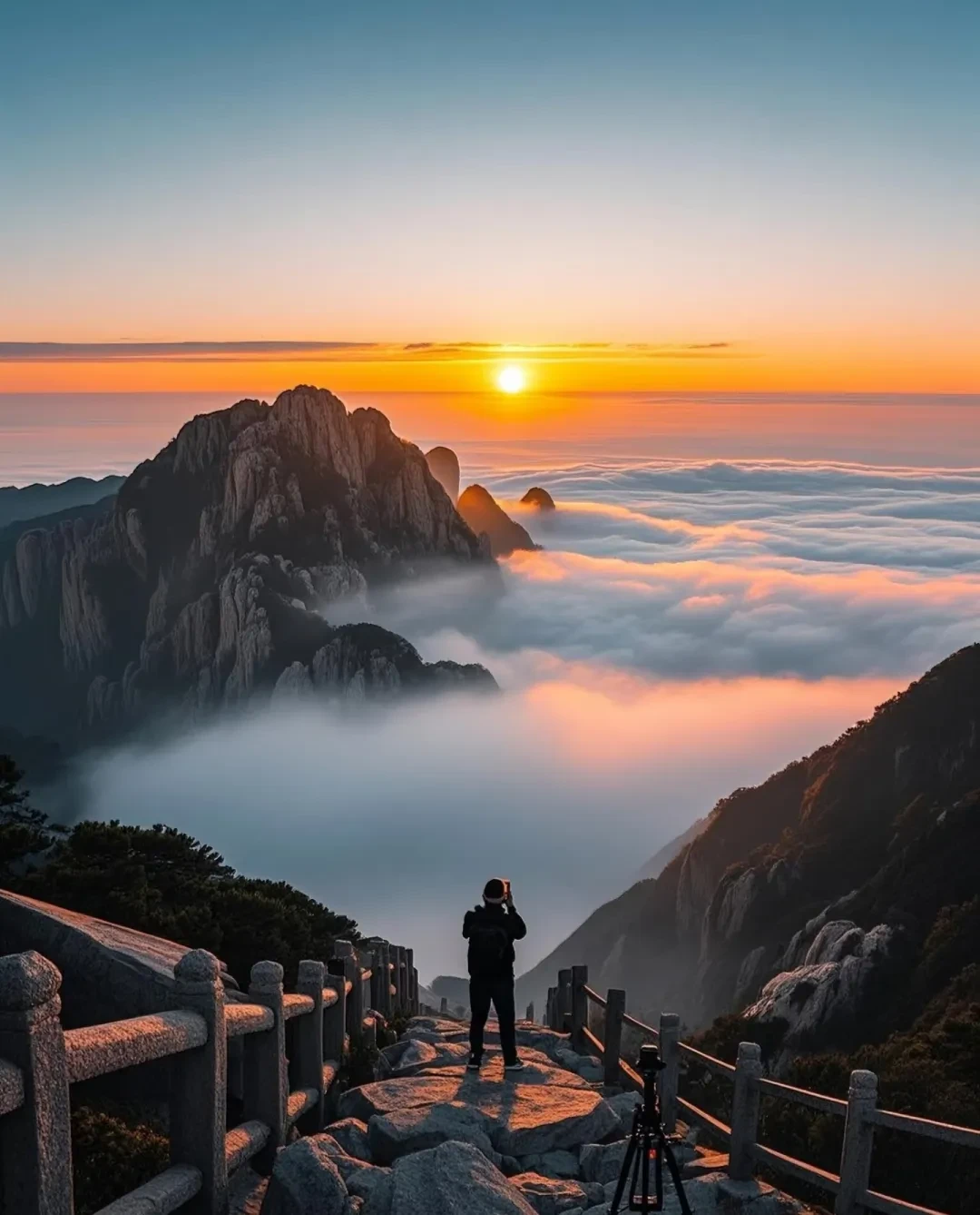 三、旭日东升,是岱顶奇观之一,也是泰山的重要标志。