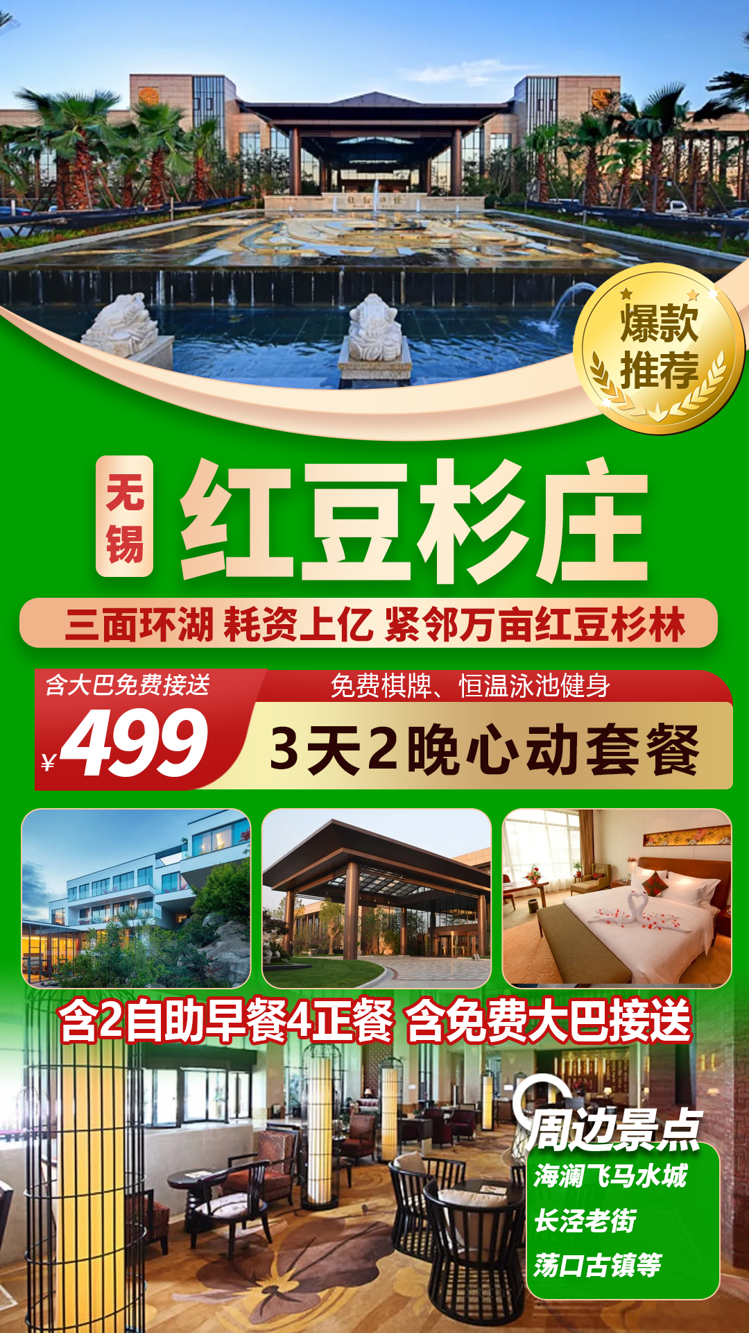 住宿:无锡红豆杉庄/如遇单人补房差300元两晚