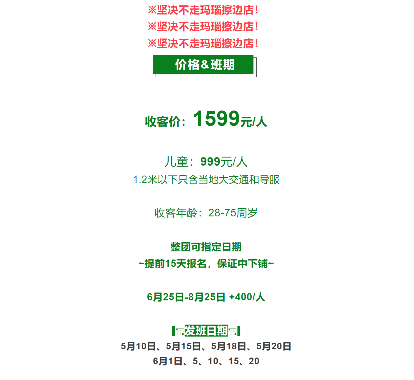 购物:品质纯玩,全程无指定购物!(当地土特产超市不算店)