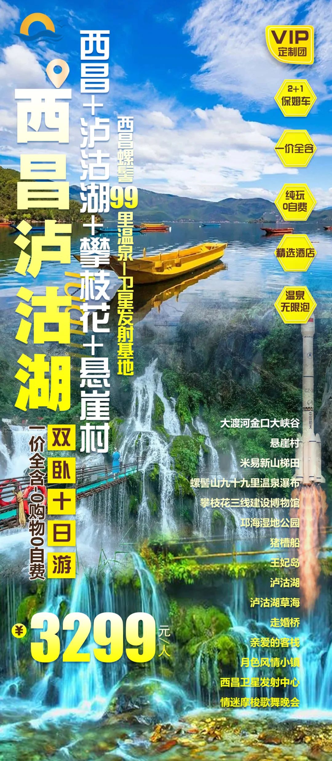 成都丨泸沽湖丨螺髻九十九里瀑布温泉丨攀枝花