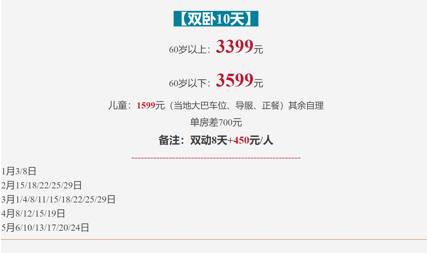 【1】 团队中单男单女,客人自补单房差或旅行社协调安排加床  单房差980元/人
