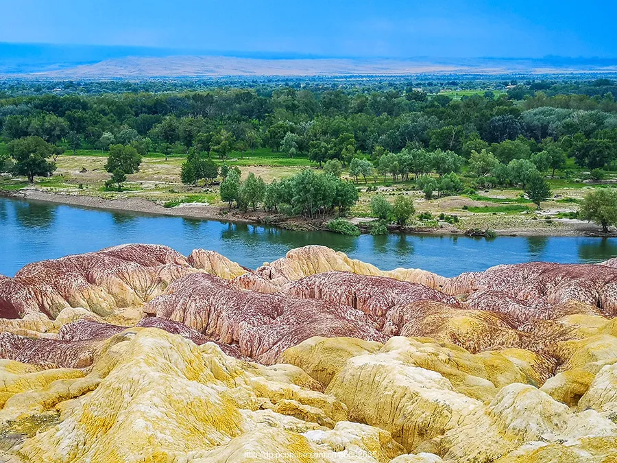 五彩滩位于新疆北端阿勒泰地区布尔津县境内,地处我国注入北冰洋的额尔齐斯河北岸的一、二级阶地上,海拔480米,往哈巴河县方向,距布尔津县城24公里,也是前往喀纳斯湖景区的必经之路。2018年4月13日,入围“神奇西北100景”。