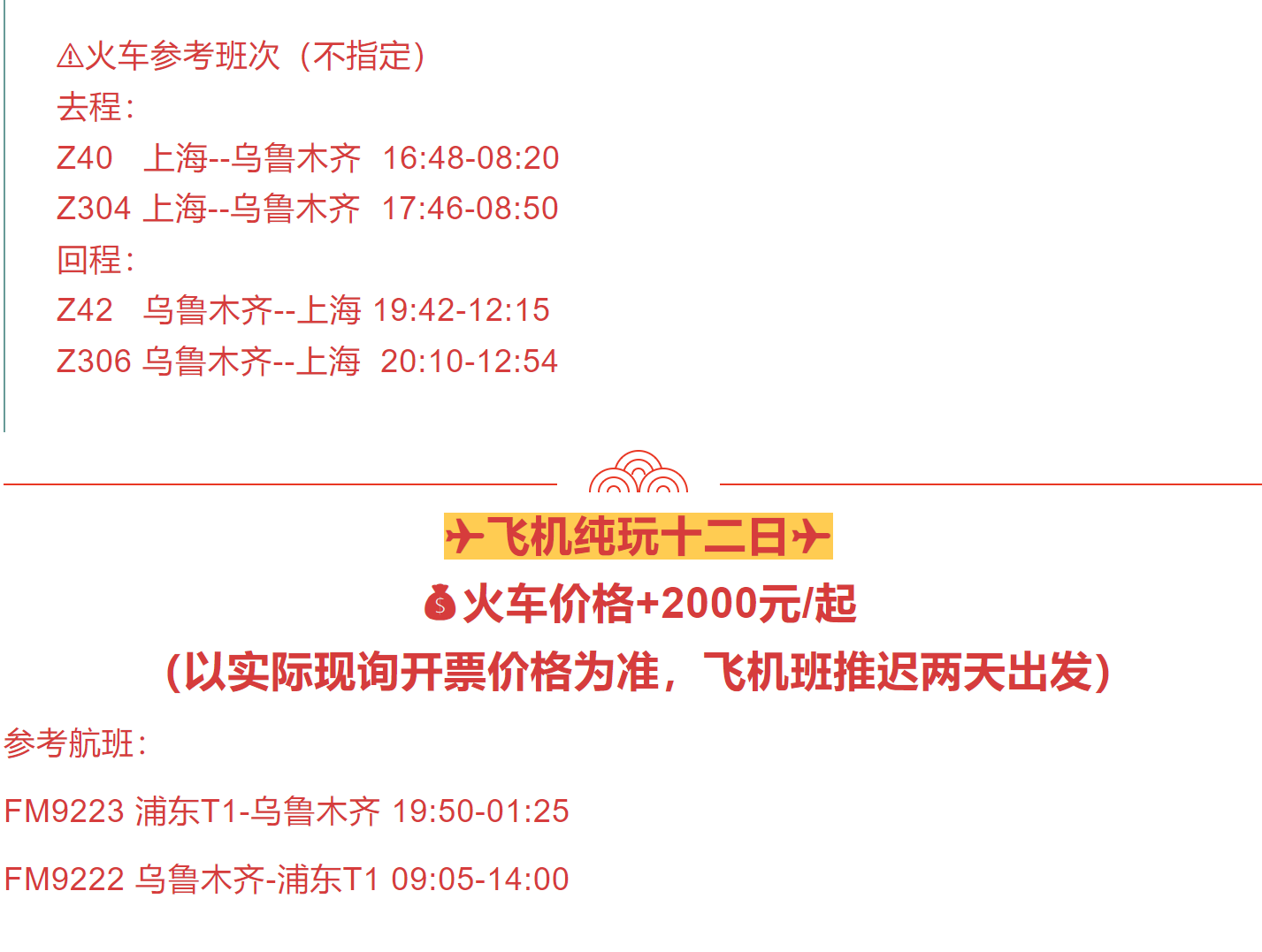 1、大交通:上海-乌鲁木齐往返车票/飞机票