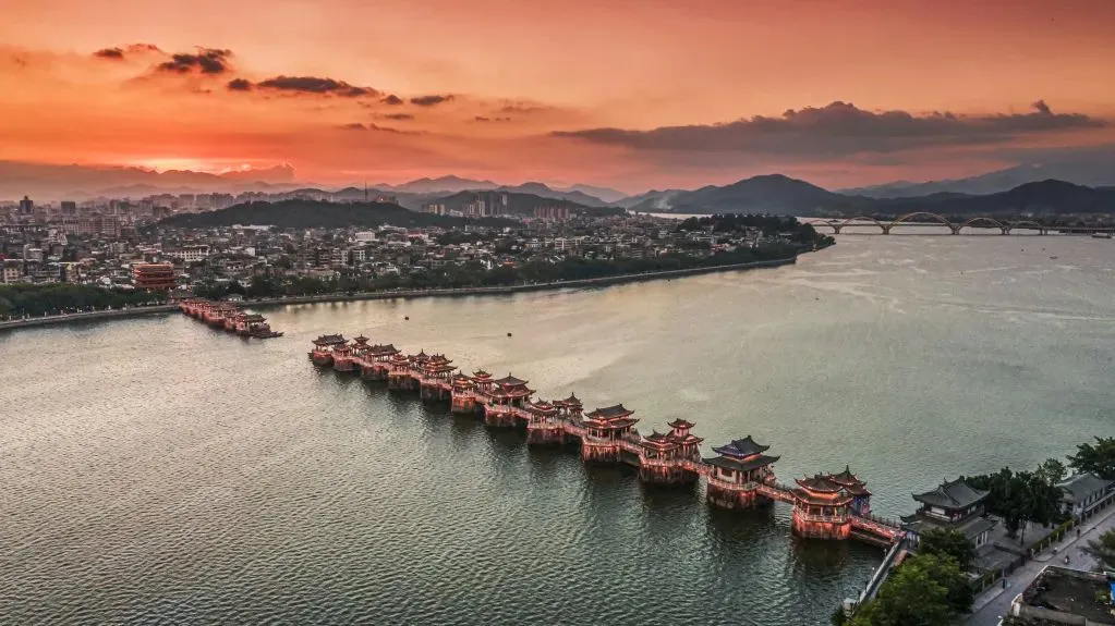 ●观赏界第一座启闭式吊桥的四大古桥之一【湘子桥】(外观),其“十八梭船二十四洲”的独特风格与赵州桥、洛阳桥、芦沟桥并称中国四大古桥。