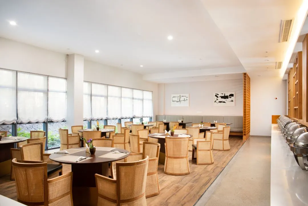 宿之清雅、食之健康、饮之沁心,您可在超大空间书吧喝茶看书,静览泳池风光,品享阅读乐趣,还可在水月台进行湖上冥想,感受天地之精华。