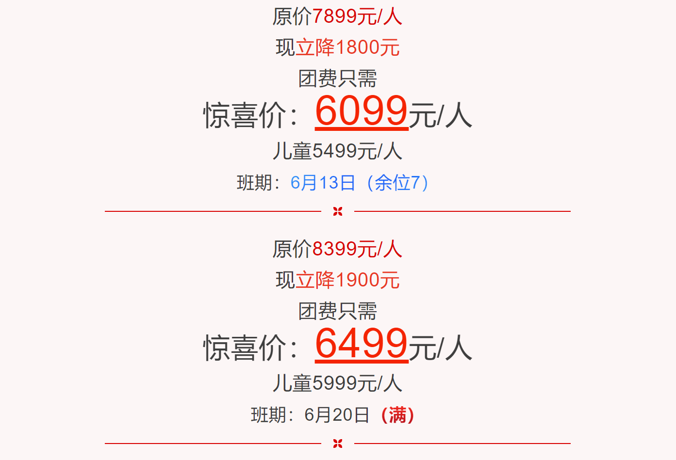 5)由于此产品为跟团打包价提前预定产品,故游客因个人原因(包括身体疾病)取消行程或者取消行程中的部分项目,费用不退。行程途中不可离团,否则我们视为自动放弃行程,立即终止合同。无法提供后续服务,包括返程的交通也无法提供!